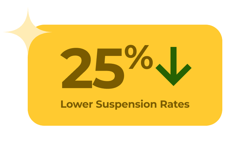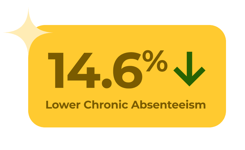 14.6% lower chronic absenteeism on average, with some BARR schools reducing chronic absenteeism up to 50%.