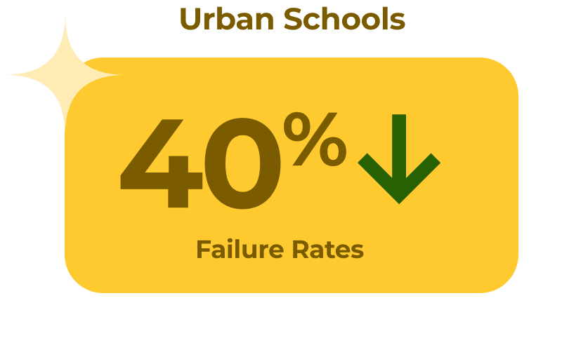 40% average reduction in failure rate after one year of BARR at large urban schools.